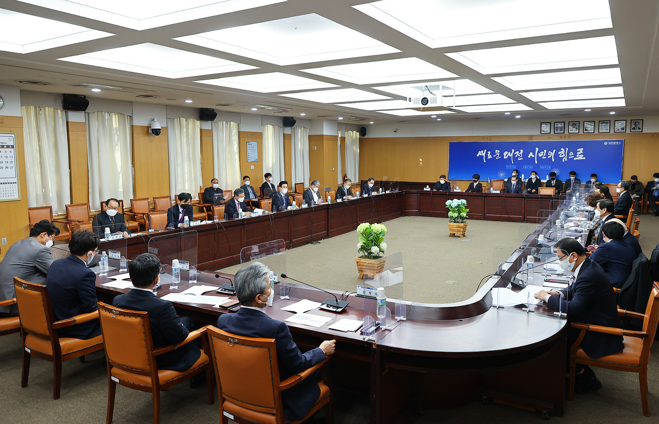 대전시에 따르면, ‘2021년 지자체-대학 협력기반 지역혁신 사업’의 선정과 성공적인 사업추진을 위해, 22일 오후 대전시청에서 총괄대학인 충남대를 비롯해 9개 대학 총장과 대전상공회의소, 연구개발특구 진흥재단, 테크노파크 등 10개의 지역혁신기관장이 참석해 기관의 역할과 협력방안을 논의했다.