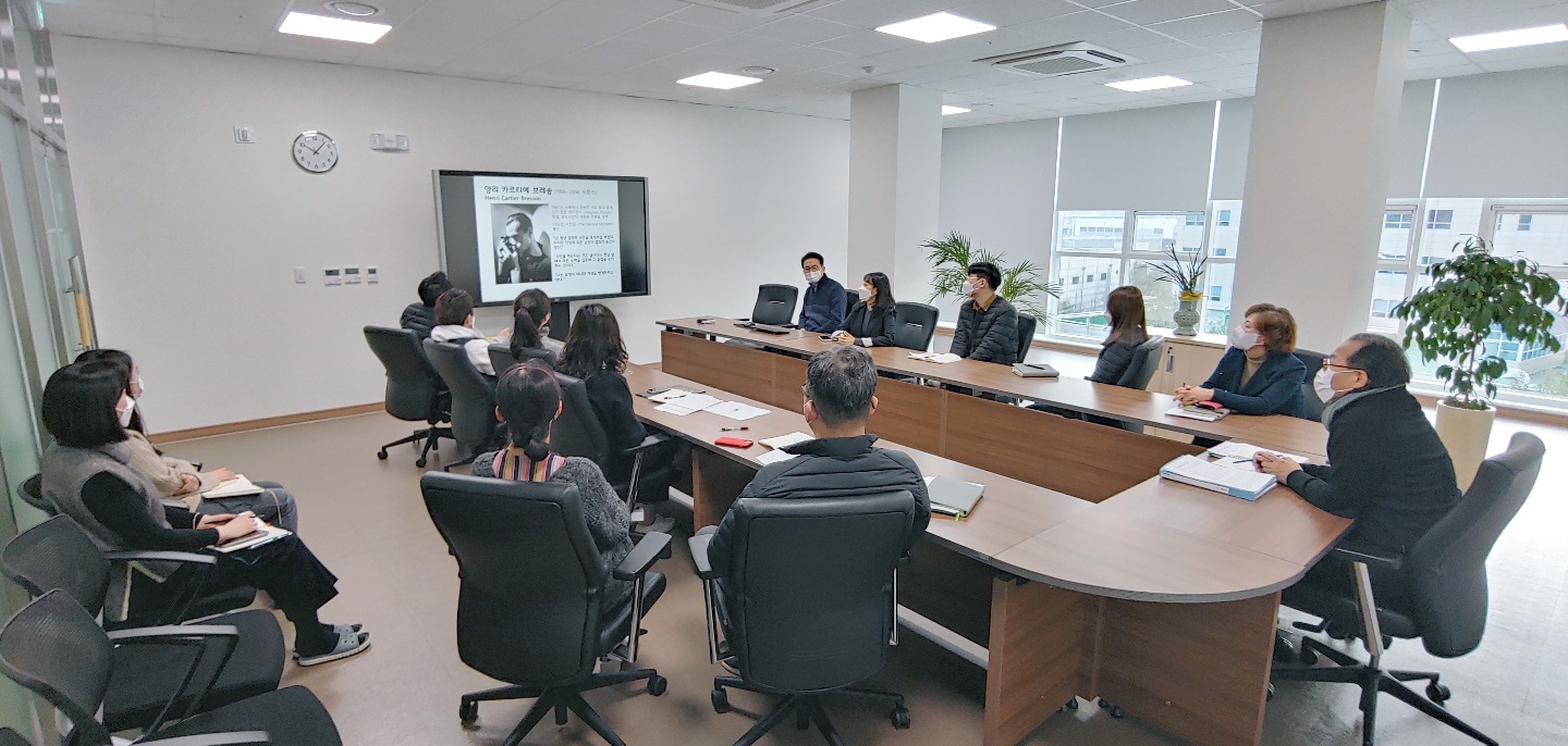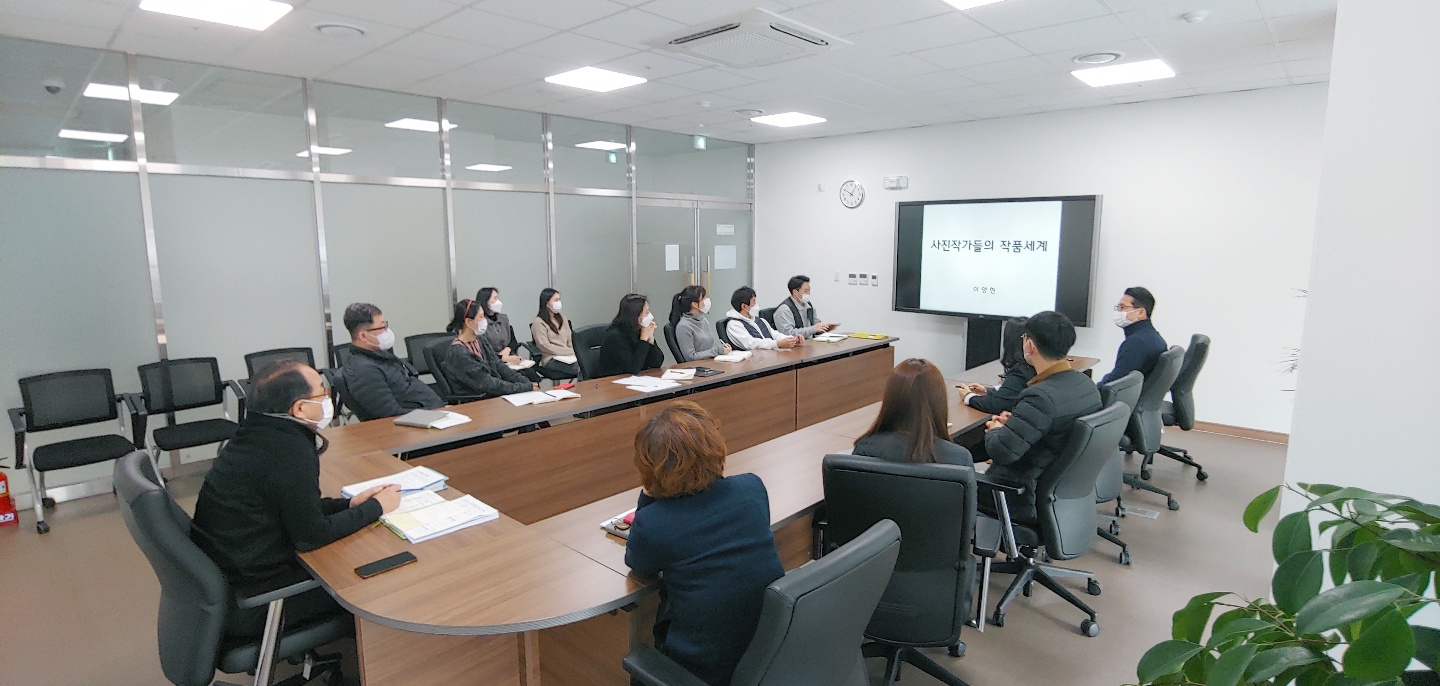 ○ 일시 : 2020.12.2.(수) 09:30~10:30○ 장소 : 중회의실(4층)○ 참석 : 윤병문 원장 등 임직원 15명○ 교육주제 : 세계 유명 사진작가들의 작품세계에 대한 배경 설명과 함께 깊이 있는 사진작품 감상