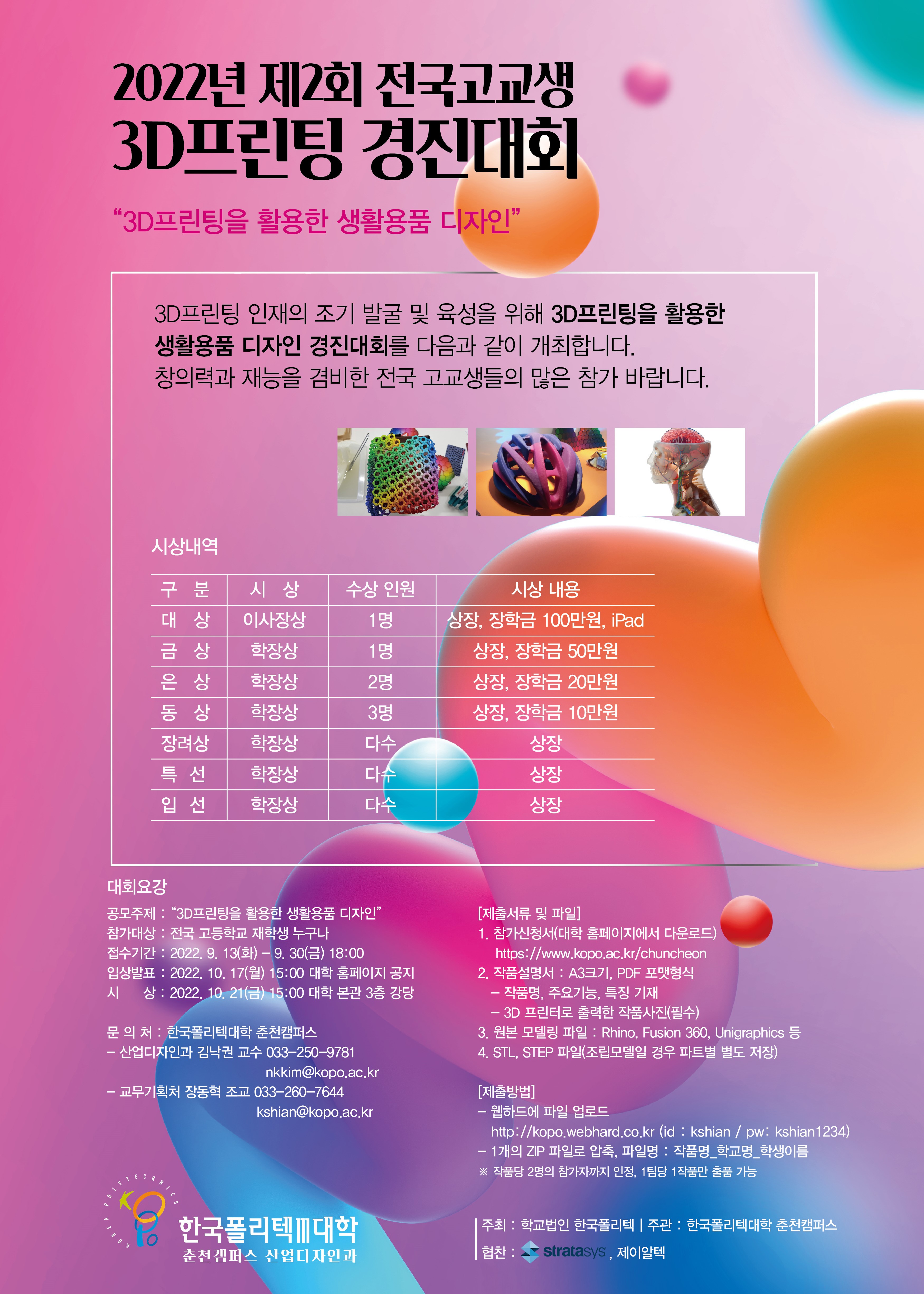 3D프린팅을 활용한 생활용품 디자인 경진대회를 개최합니다.