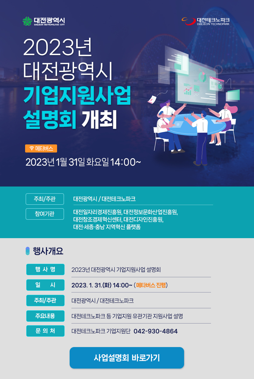2023년 대전광역시 기업지원사업 설명회 개최 안내
