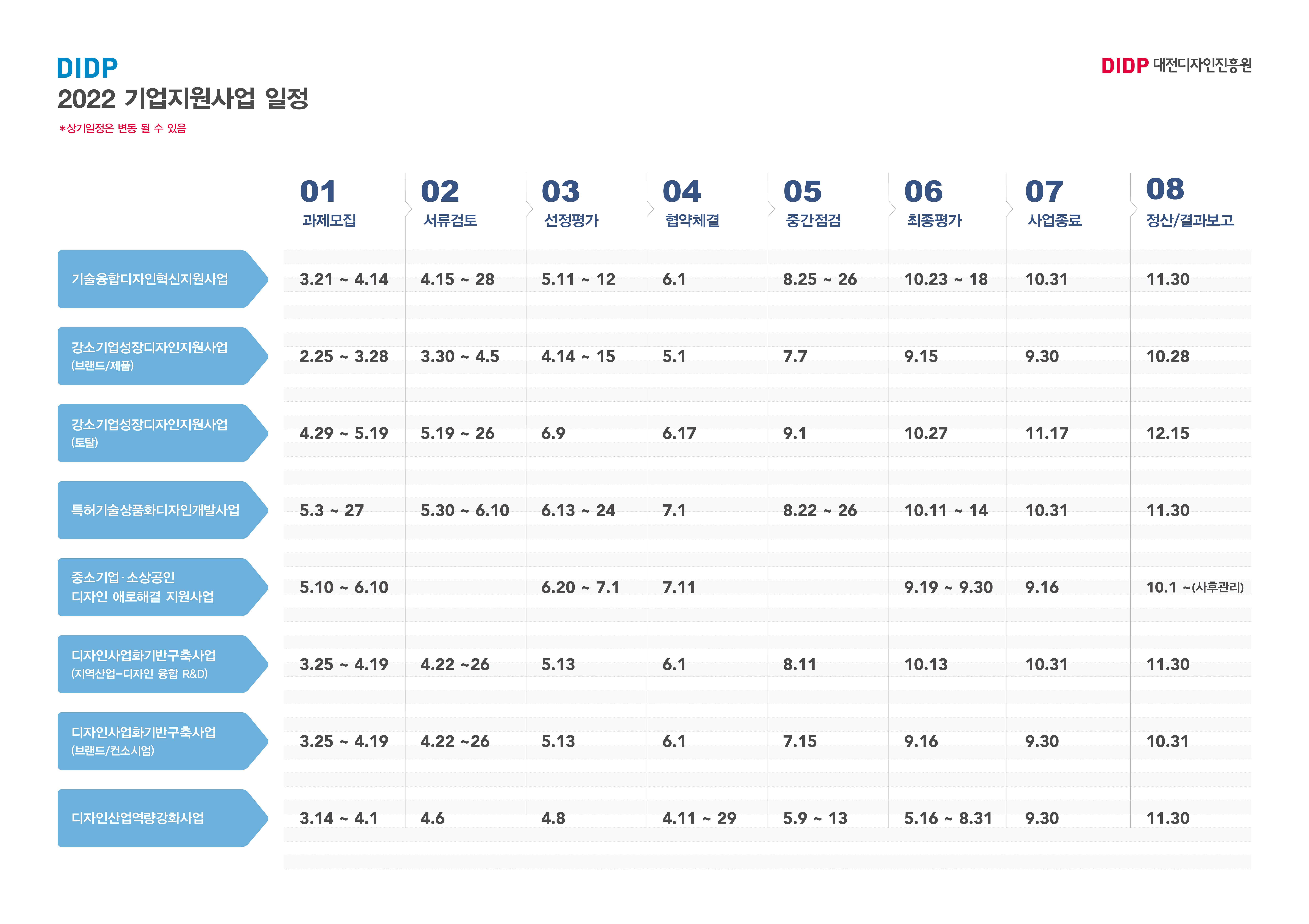 2022 기업지원사업 일정표