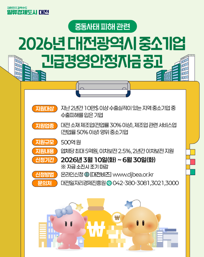 [대전광역시] 2026년 대전광역시 중소기업 긴급경영안정자금 공고