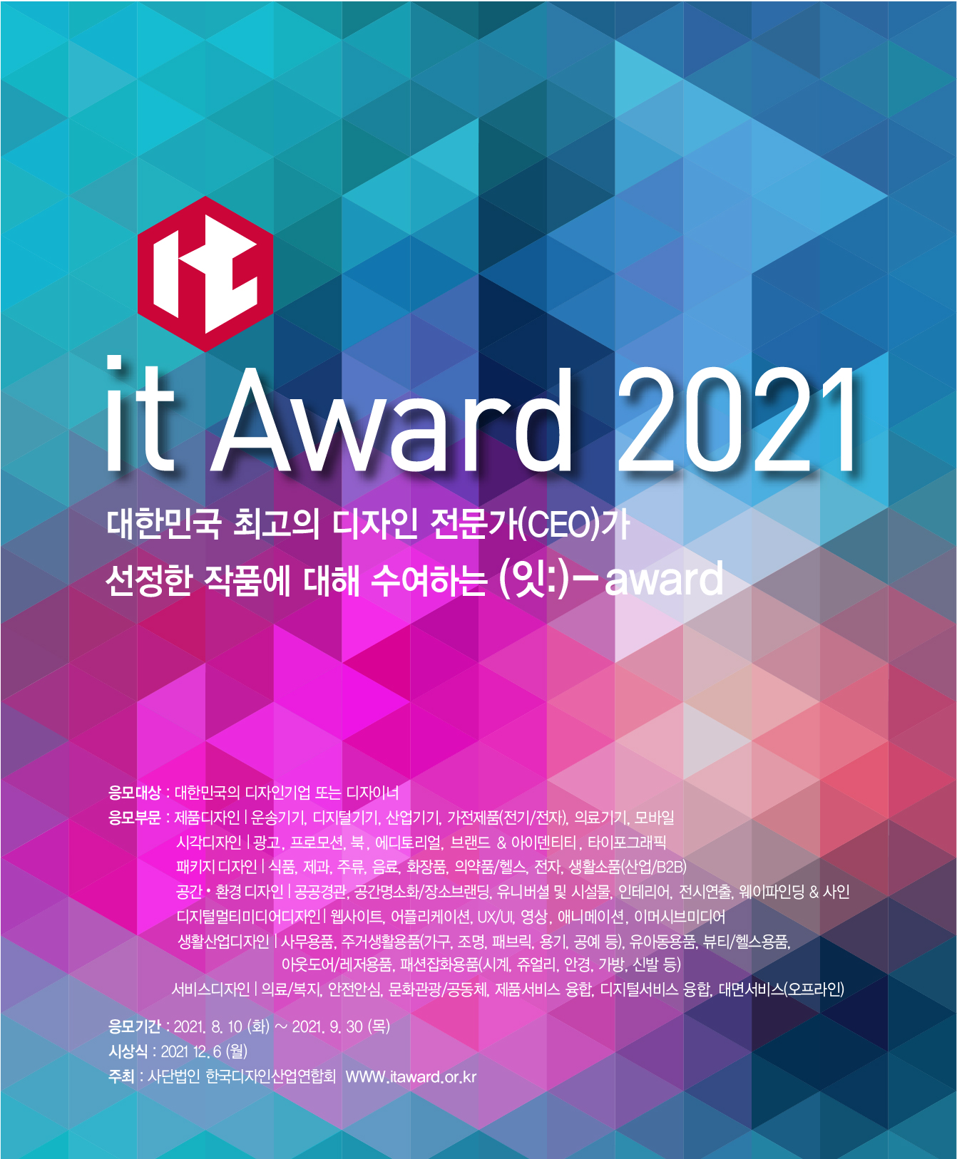 [타기관공고] 사단법인 한국디자인산업연합회 2021년 제 10회 it-Award